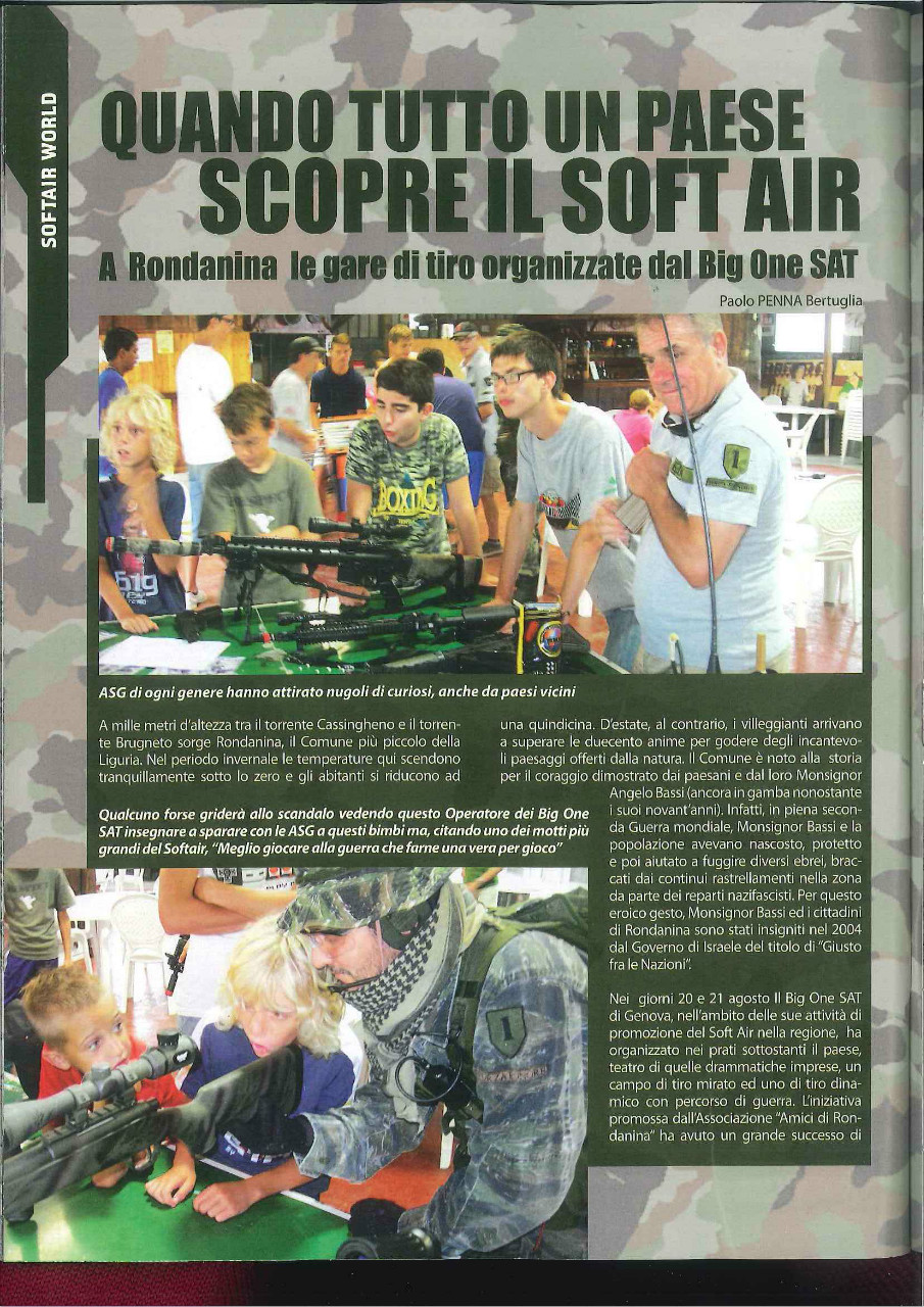 sul numero di novembre dicembre della rivista "Softair Mag" è stato pubblicato un articolo riguardante l'attività svolta dagli amici di "The Big One" con i nostri ragazzi una rappresentazione e dimostrazione di Softair, che visto l'ottimo successo si ripeterà l'anno prossimo